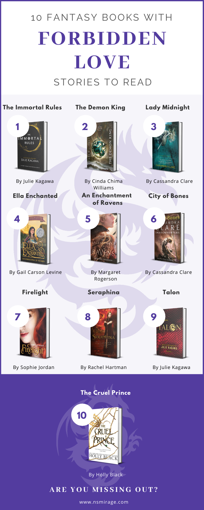 Infographic – 10 Entrancing Fantasy Books With Forbidden Love Stories Leave a Comment / By Natalie / April 24, 2021 Share on FacebookPost on XFollow usSave