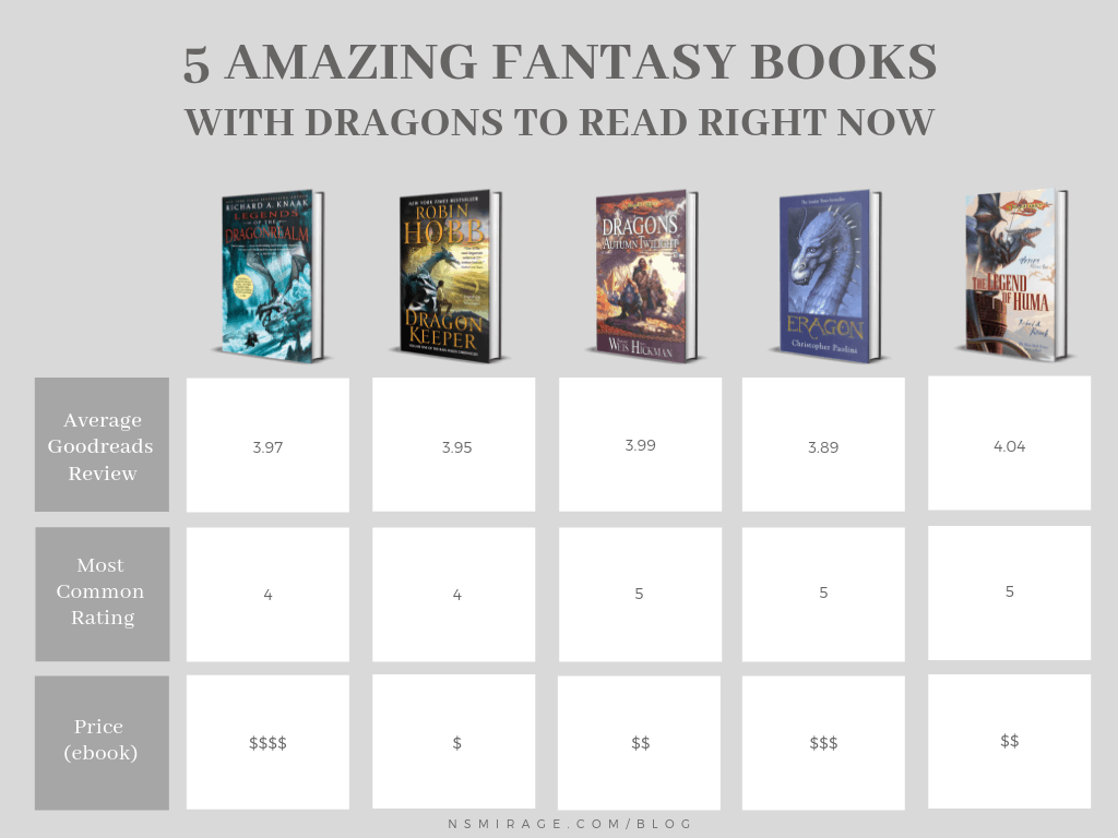 Comparison Chart – Fantasy Books With Dragons Leave a Comment / By Natalie / August 23, 2019 Share on FacebookPost on XFollow usSave