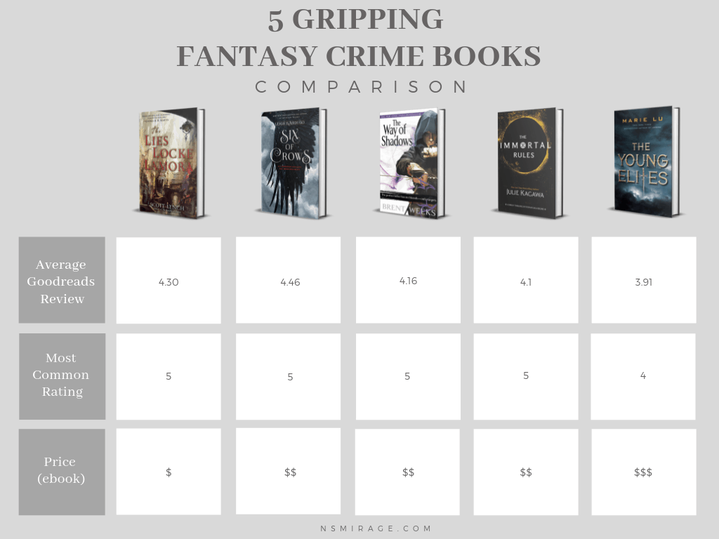 Comparison Chart – 5 Gripping Fantasy Crime Books Leave a Comment / By Natalie / March 21, 2019 Share on FacebookPost on XFollow usSave